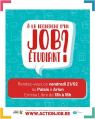 INFOS Rendez-vous ce vendredi 21/02 - Le Palais à Arlon (entrée libre de 15h à 19h) Viens faire ton CV, te tester à l'entretien d'embauche, consulter les offres exclusives et rencontrer les employeurs présents sur place !! |