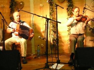 Duo de José Cabay (aux accordéons chromatique et diatonique) et Vincent Soubeyran (au violon à cinq cordes).. Bal populaire sur la place Fernand Schmit (entre la rue de la Porte (…)
