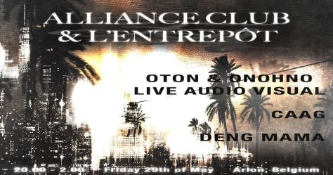 Alliance Club revient à L'Entrepôt avec une soirée issue d'une semaine de résidence - où performance live, programmation locale, expérience immersive et recherche artistique convergent. Fondé à Bruxelles par des artistes originaires de Virton et du sud de la Belgique, le collectif a toujours conservé un lien fort avec ce territoire. Cette date en est une extension directe : un retour dans la région, et l'ouverture au public d'une semaine de recherche artistique menée sur place avec L'Entrepôt. Dans la semaine précédant la représentation, Baptiste (OTON), Yanice (Onohno) et Raoul (cofondateur d'Alliance) développeront une nouvelle étape de OTON & Onohno A/V Live (performance audio-visuelle live), un projet qui explore la manière dont musique électronique en direct, visuels, lumière et scénographie peuvent interagir et évoluer ensemble en temps réel. Ce qui sera présenté le 29 mai n'est donc pas une forme finalisée, mais une première mise à l'épreuve publique : un moment où de nouvelles matières musicales, des systèmes visuels, des intentions spatiales et des interactions avec le public sont testés en conditions réelles. Cette étape constitue également le premier de trois temps publics clés d'un processus plus large, qui se poursuivra dans les mois à venir. Au cœur de cette trajectoire : une approche spécifique de la création d'album, basée sur des captations live. Les performances - avec leurs improvisations, leurs tensions, leurs accidents, leur acoustique propre et la présence du public - deviennent ici la matière première du futur disque d'OTON. En ce sens, les personnes présentes ce soir-là ne seront pas seulement spectateur·ices d'un projet en construction : elles en feront aussi, à leur manière, partie. ▬▬▬ LINE UP ▬▬▬▬▬▬▬▬▬▬▬▬▬▬▬ ► CAAG (Luxembourg / Bruxelles) Basée au Luxembourg et active à Bruxelles à travers Alliance Club, CAAG s'est imposée comme une curatrice attentive et une DJ singulière au sein de la scène électronique underground. Ses sets mêlent grooves hypnotiques et techno texturée, dans une construction progressive et immersive. Sa pratique repose sur un équilibre subtil entre énergie et introspection. Connue pour ses sélections trippy et profondément travaillées, elle développe des sets où les dynamiques se construisent dans le temps, entre tension, relâchement et transformation. ► Deng Mama (Luxembourg) Basée au Luxembourg, Deng Mama développe une approche du DJing traversée par des notions d'hypnose, de progression et de rituel. Plutôt que de s'ancrer dans des genres ou des BPM fixes, ses sets évoluent en fonction des atmosphères et des tensions qu'elle installe. Elle navigue entre rythmiques régulières, passages plus fragmentés ou halftime, tout en maintenant une continuité sensible. Cette capacité à faire circuler et transformer l'énergie dans la durée est au cœur de sa pratique, qu'elle qualifie de witchdance - un équilibre entre mouvement, intensité et profondeur introspective. ► OTON A/V Live with Onohno - sortie de résidence Pour clôturer la soirée, OTON et Onohno présenteront le premier état public du live développé durant cette résidence à L'Entrepôt. Cette nouvelle phase du projet met l'accent sur l'évolution de la composition en direct, la place de l'improvisation, ainsi que sur la structuration de la performance dans le temps. Elle approfondit également les relations entre musique, image, lumière et espace, envisagées comme des éléments en interaction constante. Ce qui sera présenté ici est une étape : une forme encore en construction, encore en train de se chercher, mais qui porte déjà les directions et les matériaux appelés à nourrir la suite du projet - à la fois sur scène et dans sa future traduction discographique. ▬▬▬ TIMETABLE ▬▬▬▬▬▬▬▬▬▬▬▬▬▬ ► 20.00-22.30 : CAAG ► 22.30-00.30 : Deng Mama ► 00.30-01.30 : OTON & Onohno A/V Live |